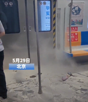2023年5月底,北京地鐵7號線上,一名乘客挎包內(nèi)的充電寶突然發(fā)生爆燃。