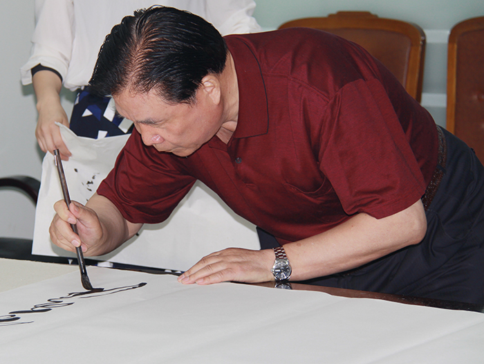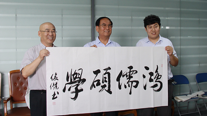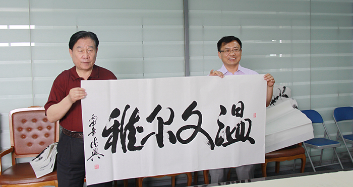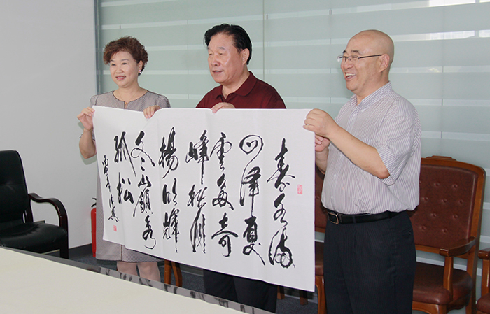 董事長楊迺文先生即興作詩一首,由王書記提筆賜墨,表明創業艱難,現如今可以笑談“雙創”,創新、創業、創品牌。