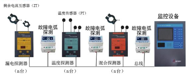 故障電弧探測器具有信號上傳功能, 故障電弧探測器可以通過 RS485 串口與上端電氣火災(zāi)監(jiān)控設(shè)備進行通訊,可以將正常信號和報警信號上傳,并可通過上端電氣火災(zāi)監(jiān)控設(shè)備對下端故障電弧探測器進行報警復(fù)位。實現(xiàn)了智能統(tǒng)一控制管理。