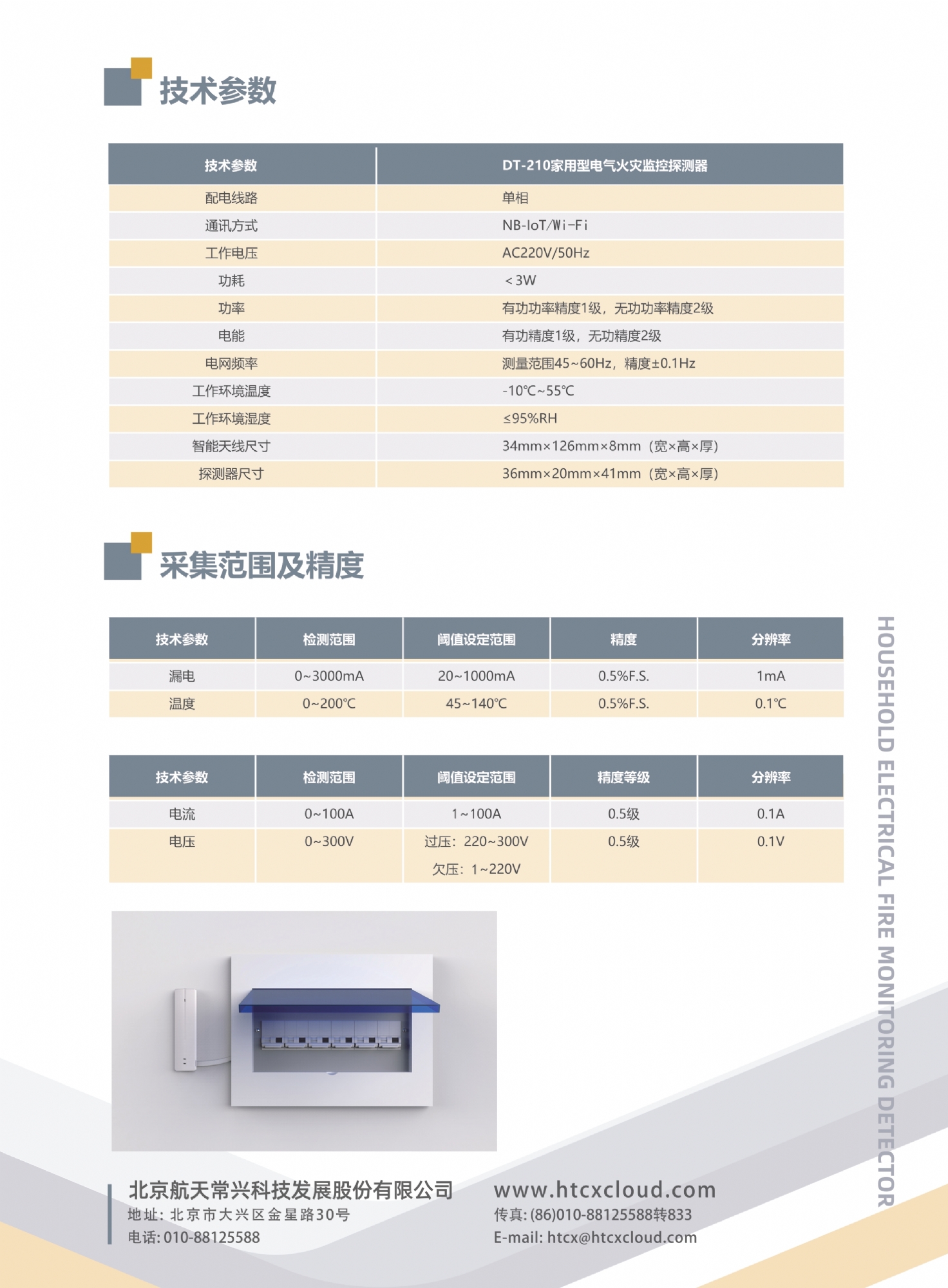 DT-210作為家用型電氣火災(zāi)監(jiān)控探測(cè)器,采用I0r 阻性漏電檢測(cè)技術(shù),可在線監(jiān)測(cè)AC220V的漏電、溫度、電壓、有功功率、視在功率、電網(wǎng)頻率、功率因數(shù)等電氣參數(shù),具有高精度電能計(jì)量功能,實(shí)時(shí)監(jiān)測(cè)并通過(guò)NB-IoT無(wú)線通訊功能實(shí)現(xiàn)數(shù)據(jù)與平臺(tái)端或APP端實(shí)時(shí)同步數(shù)據(jù),進(jìn)行后臺(tái)報(bào)警及故障提示,可靠性高,抗干擾度強(qiáng)。